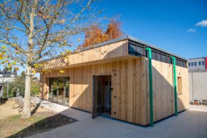 Unser inklusiver Betriebskindergarten Igelbau ist jetzt größer geworden! Wir haben im Sommer und Herbst das bestehende Gebäude um einen zusätzlichen Bau, die Igelstube, erweitert.