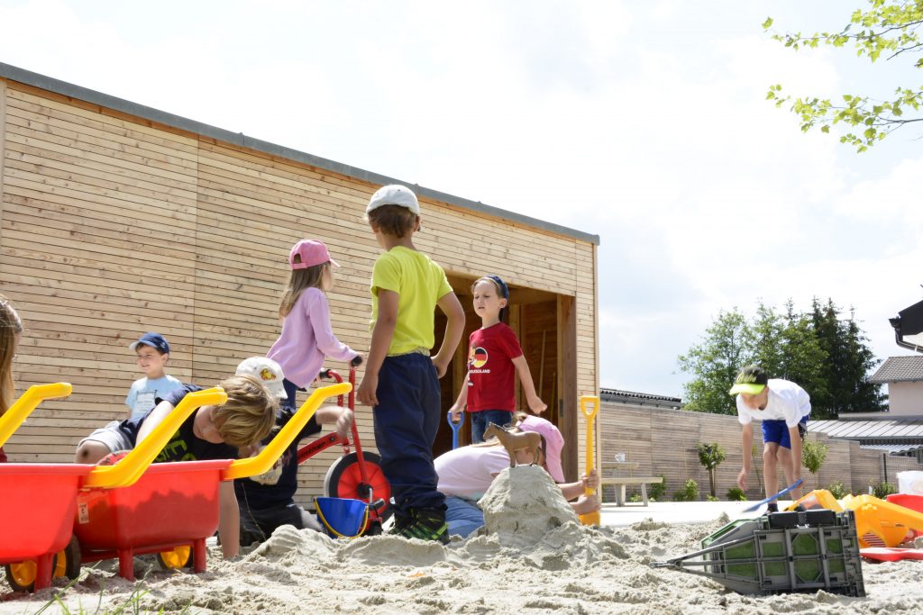 Lässt es das Wetter zu, gehen wir zum Toben, Spielen und Basteln in den Garten, der viel Platz zum Entdecken bietet. Auf dem Grundstück befinden sich unterschiedliche Spielgeräte, ein Sandplatz mit Wasserspiel, ein Kletterbaum, Entdeckungsecken sowie Mal- und Kletterwände.